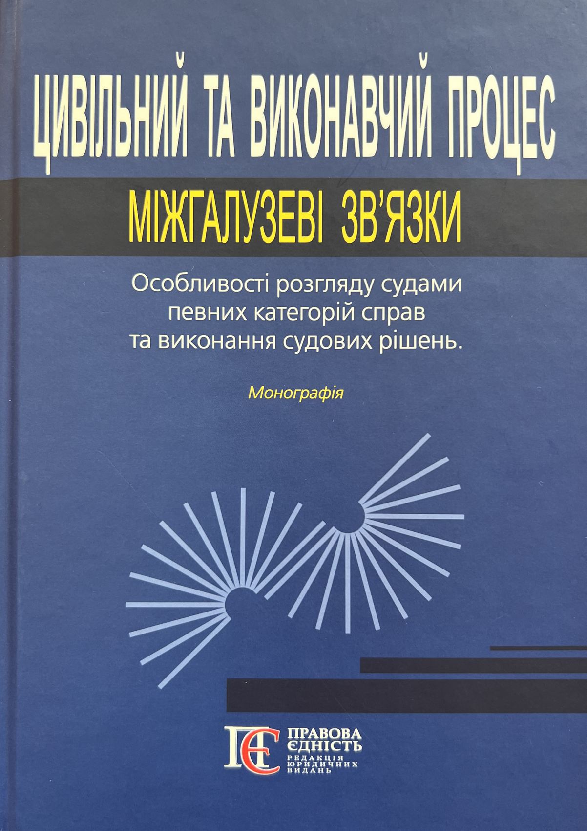 Монографія присвячена актуальній темі та ґрунтовному дослідженню судової та виконавчої практики, аналізу міжгалузевих зв’язків цивільного та виконавчого процесу. Авторським колективом проаналізовано особливості розгляду судом певних категорій цивільних справ, які випливають із трудових, цивільних (зобов’язальних), кредитних, земельних, спадкових, сімейних відносин, відшкодування шкоди, проблеми процедури примусового виконання рішень суду по цивільним справам. За результатами роботи авторами внесені конкретні пропозиції з удосконалення чинного законодавства.